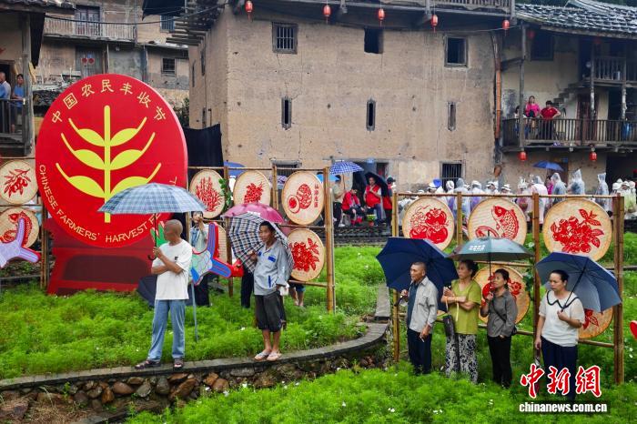 9月23日,公众冒雨参与丰产节举动。中新社记者 王东亮 摄